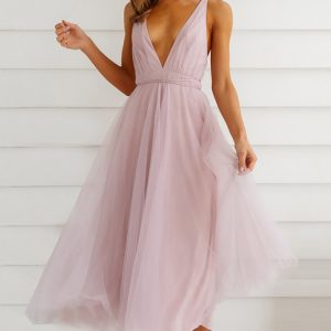 Sexy Deep V Neck Backless Lace-Up Mesh Puff Dress