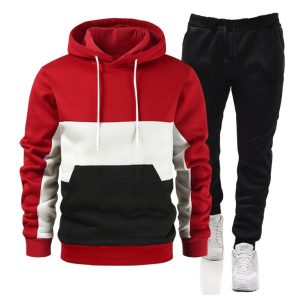 Spliced color men’s hoodie sweatshirt loose casual suit