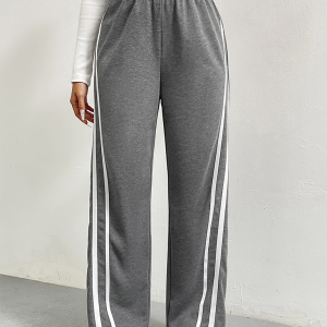 Sports pants high waist loose straight casual sweatpants striped stitching wide leg pants