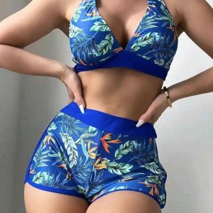 Splicing print halter neck split bikini bikini sexy high waist swimsuit