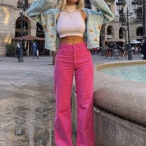 Trendy loose all-match trousers look thin high waist jeans wide leg pants