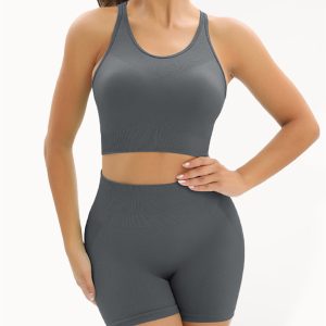 Women’s Beautiful Back High Waist Peach Hip Seamless Knitted Tank Top Shorts Two-Piece Set