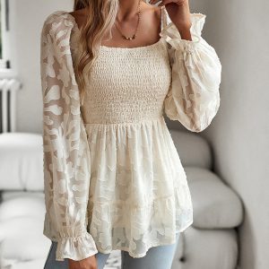 Women’s Bohemian Elegant Square Neck Long Sleeve blouse