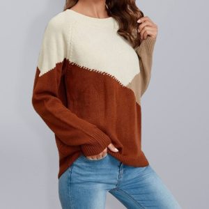Women’s Casual Long Sleeve Mid Length Contrast Sweater