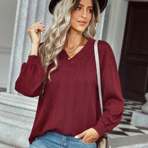 Women’s fashion knitted lace V-neck bottoming shirt