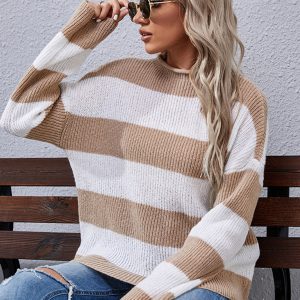 Women’s Fashion Long Sleeve Striped Turtleneck Sweater