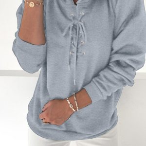 Women’s Knit Solid Eyelet Lace-Up Hoodie