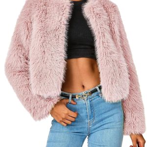 Women’s New Furry Multicolor Collarless Top Short Jacket