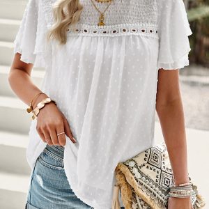 Women’s new jacquard temperament commuter short-sleeved shirt top