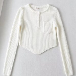 Women’s new round neck thickened curved hem short long-sleeved sweater