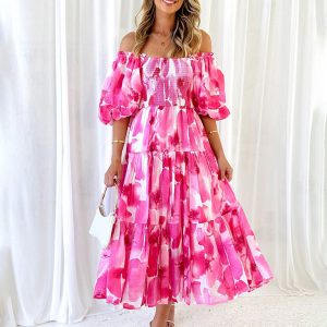 Women’s Resort Style Puff Sleeve Printed French Cake Dress