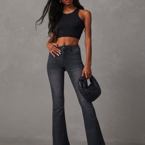 Women’s Retro Washed High Waist Slimming Stretch Micro Flared Jeans