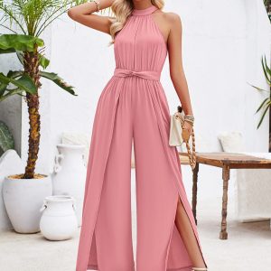 Women’s solid color halterneck strappy jumpsuit
