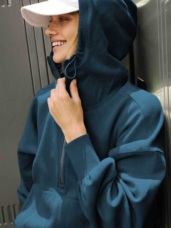 Athletic hoodie drawstring long sleeve top half zip. Please use the size guide shown in our pictures. Before choosing a size, please read each element of the size guide carefully. Unique design, classic style, casual and comfortable. It is suitable for outing and leisure. The size is measured manually, and the error of 1-3cm is normal.