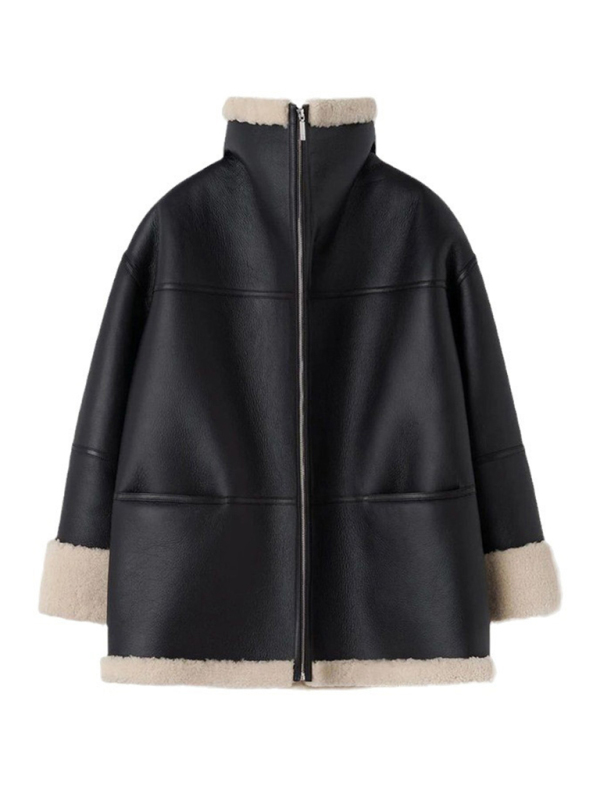 Cashmere leather fur collar composite jacket