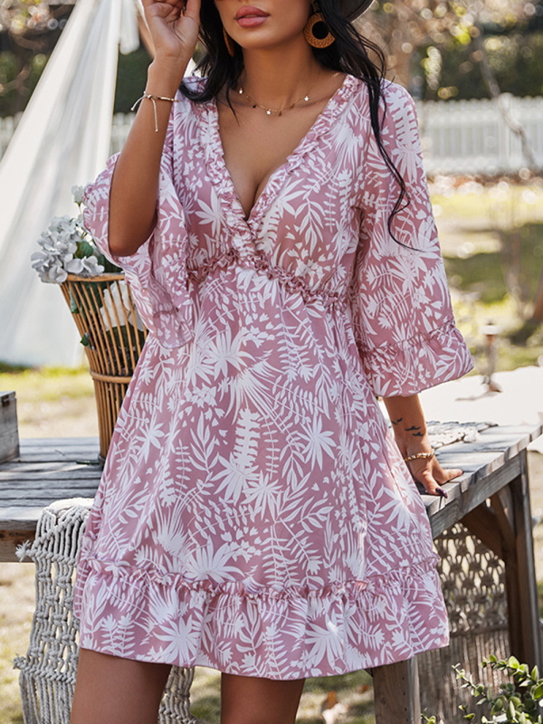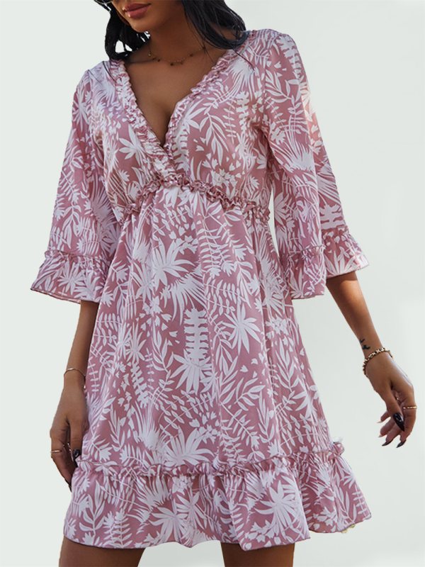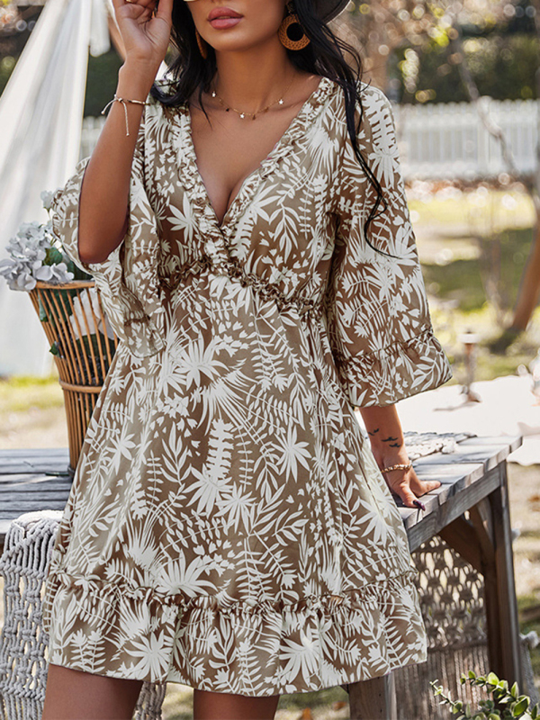 Deep V Casual Sexy Holiday Print Dress Mid Skirt. Please use the size guide shown in our pictures. Before choosing a size, please read each element of the size guide carefully. Unique design, classic style, casual and comfortable. It is suitable for outing and leisure. The size is measured manually, and the error of 1-3cm is normal.