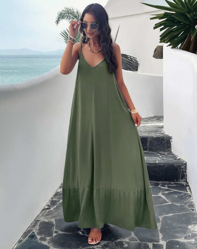 Elegant solid color loose suspender dress