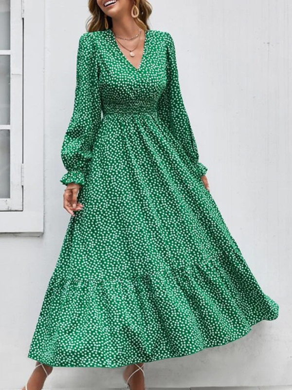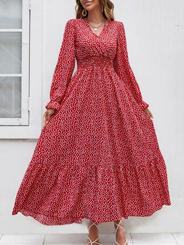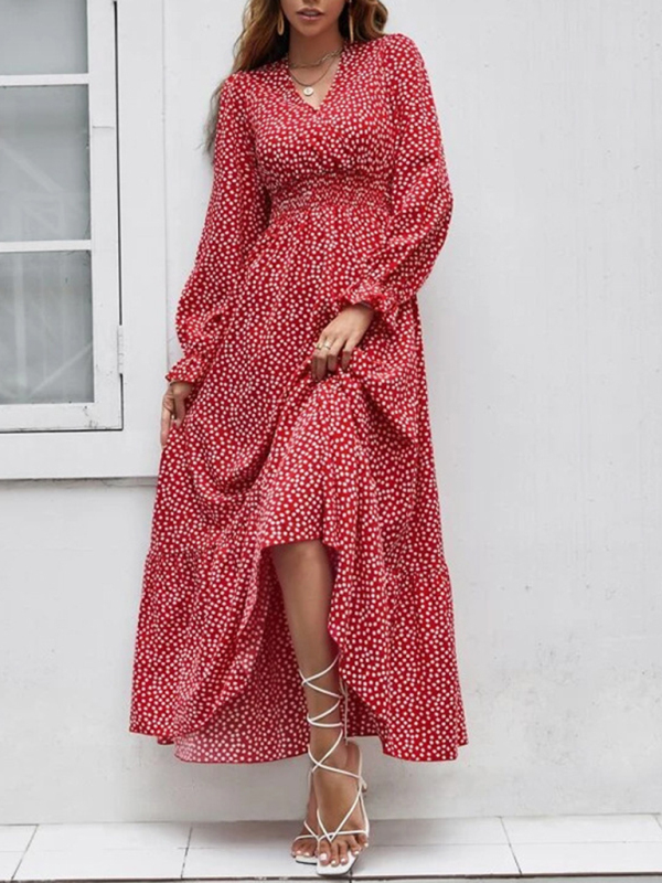European and American floral elegant V-neck print holiday European and American dress. Please use the size guide shown in our pictures. Before choosing a size, please read each element of the size guide carefully. Unique design, classic style, casual and comfortable. It is suitable for outing and leisure. The size is measured manually, and the error of 1-3cm is normal.