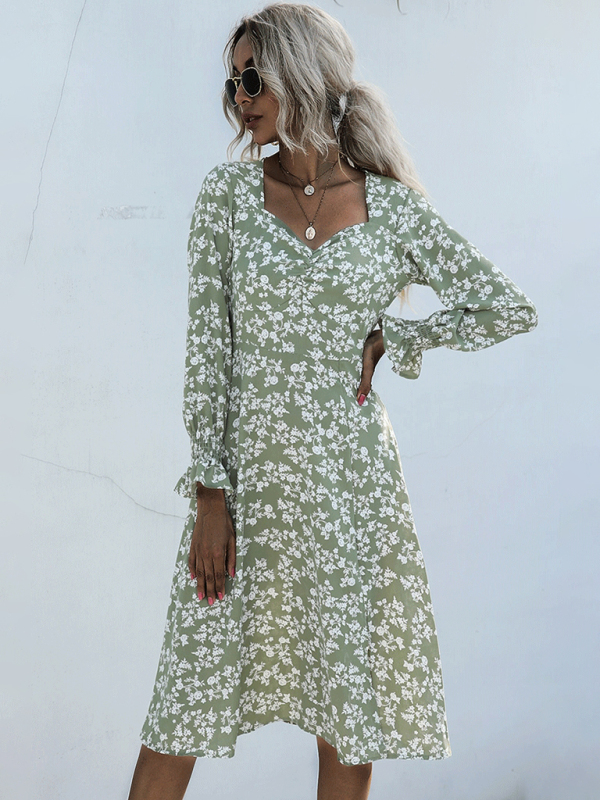 This Long Sleeve V-Neck Pleated Cropped French Floral Dress features a delicate floral pattern, perfect for a feminine and elegant look. Made from 100% Polyester, it is versatile for all seasons and suitable for various occasions. Pair with heels for a chic and stylish ensemble.