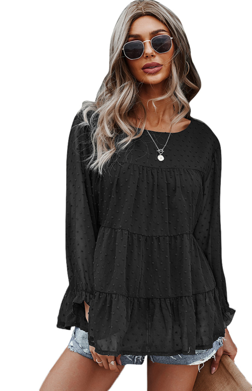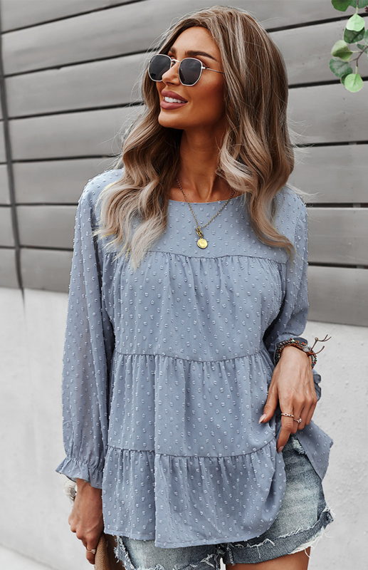 Ladies Casual Jacquard Top exudes relaxed elegance.