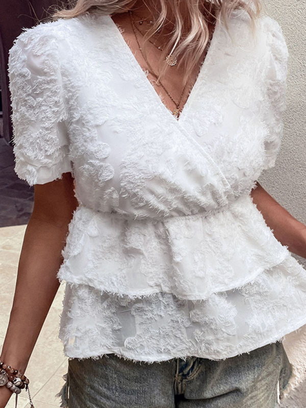 Women’s new elegant V-neck waisted double-hem shirt, the simple design makes the boring season colorful and interesting. When purchasing, it is recommended to pay attention to the appropriate size to ensure comfort and fit. Please read each element in the size guide carefully before choosing a size. Sizes are measured manually, and an error of 1-3cm is normal. In addition, it is important to understand the material and care requirements of the clothing in order to properly care for and maintain the clothing and extend its service life.
