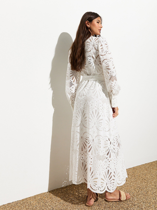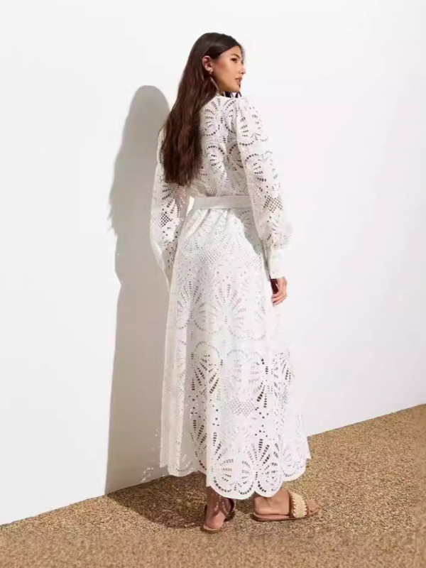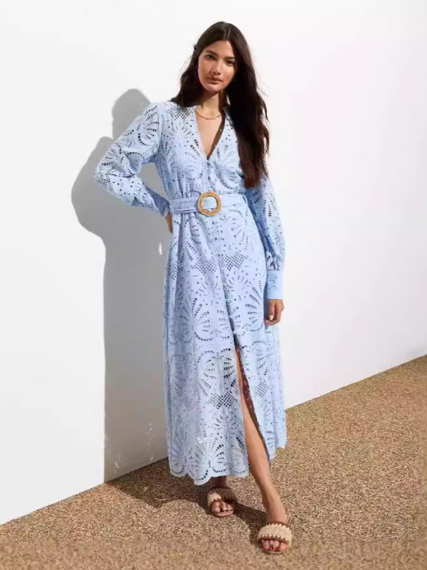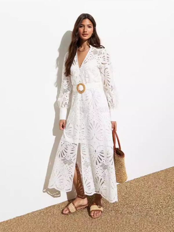 Ladies new hollow v-neck lace cardigan holiday dress