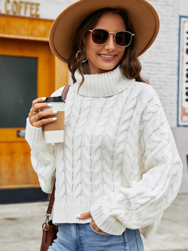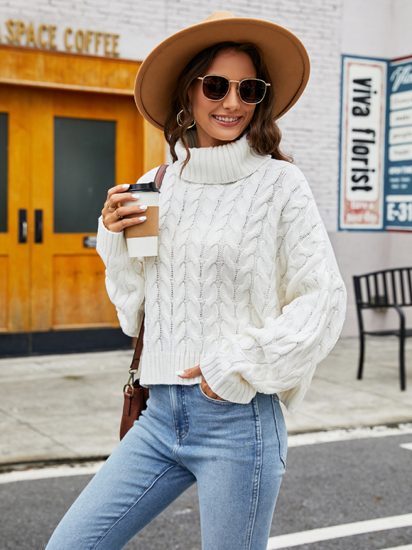 Ladies rough hemp turtleneck casual sweater