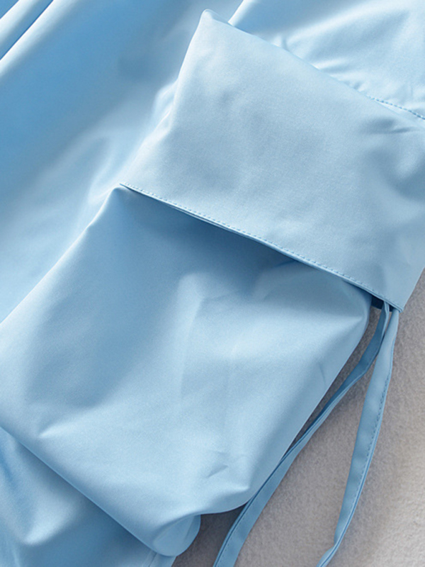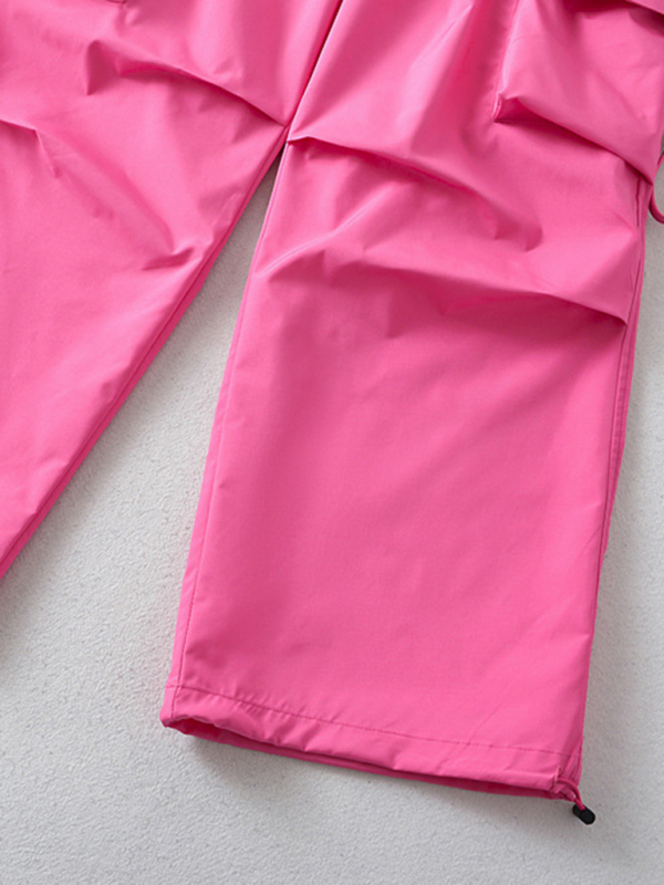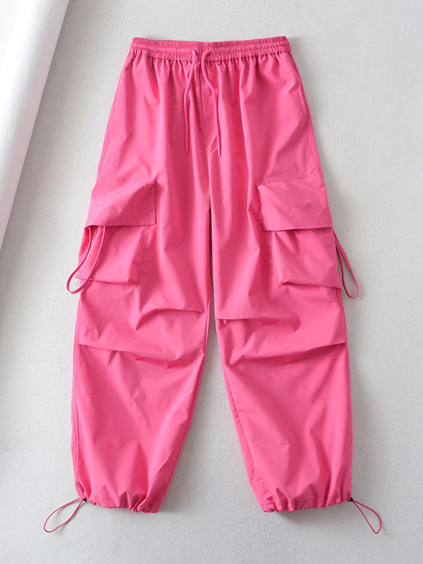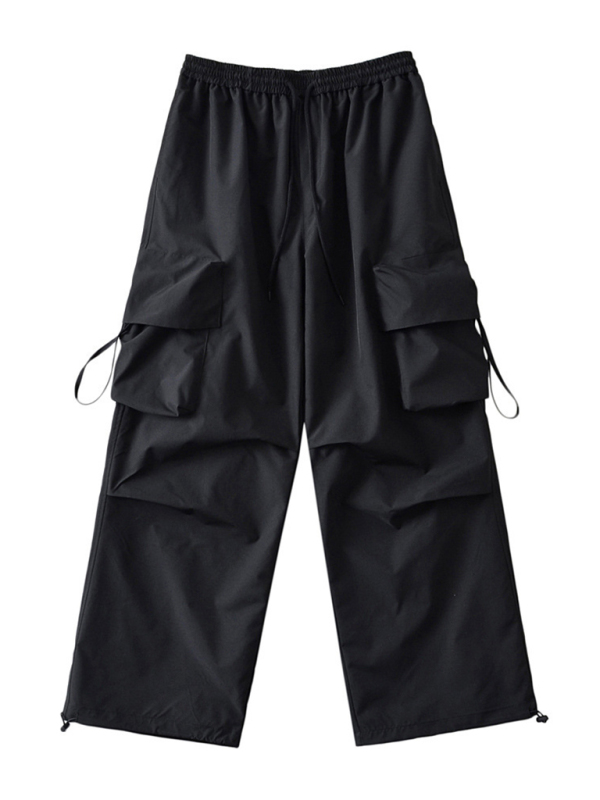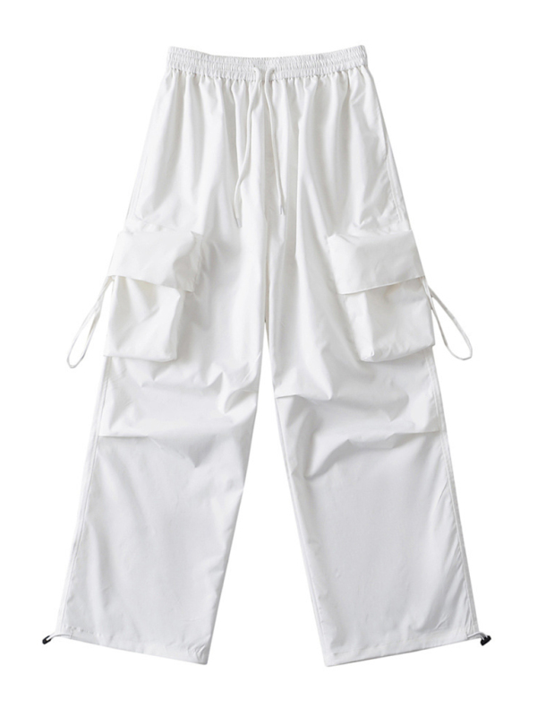 Large pocket sports cargo pants, loose casual drawstring straight fast