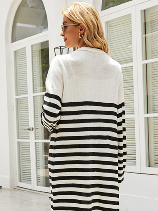 The new long casual striped loose long-sleeved coat sweater cardigan is suitable for many occasions. The simple design makes the boring season colorful and interesting. A variety of matching options make you confident and beautiful. Please use the sizing guide shown in our images. Please read each element in the size guide carefully before choosing a size. The size is measured manually, and it is normal for there to be an error of 1-3cm.