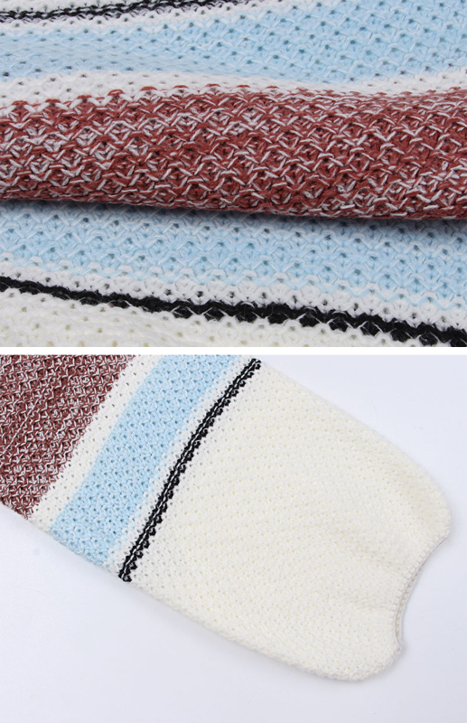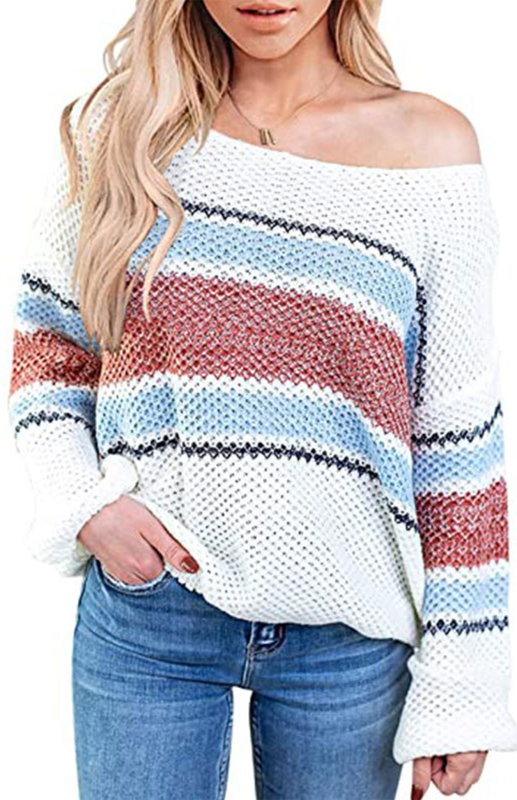 Perfect for those breezy spring-summer days, this Loose Round Neck Knit Bottoming Shirt features colorful striped patterns. Crafted from acrylic, it offers a comfortable fit with no elasticity, making it an ideal casual piece for your wardrobe’s essentials.
