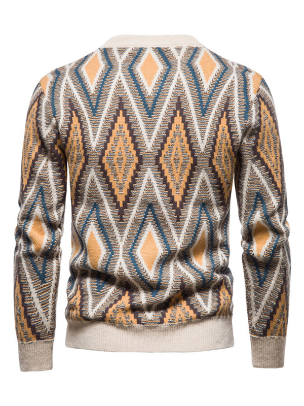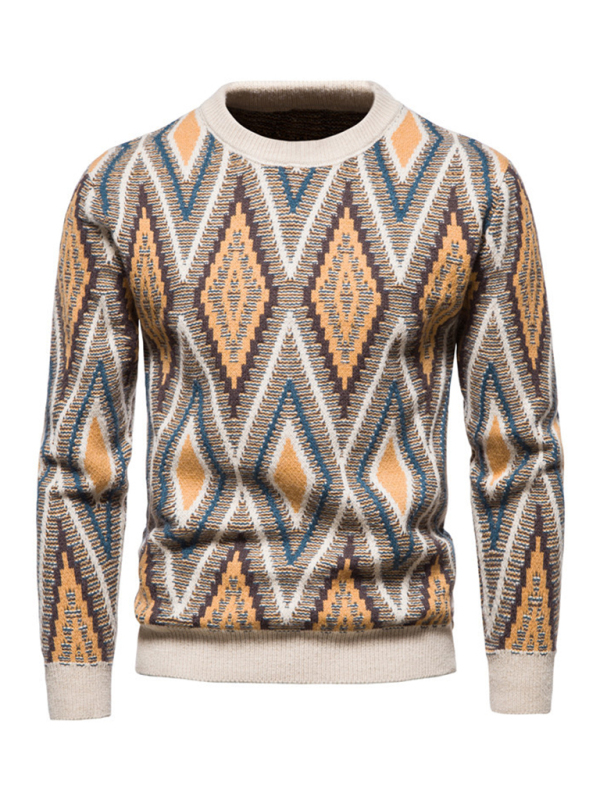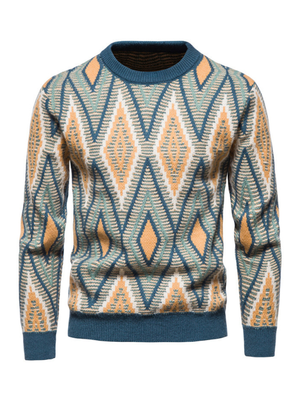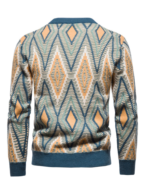 Men’s Christmas round neck rhombus jacquard sweater is suitable for a variety of scenes. The simple design makes the boring season colorful and interesting. A variety of matching options make you confident and handsome. Please use the sizing guide shown in our images when purchasing. Please read each element in the size guide carefully before choosing a size. Sizes are measured manually, and an error of 1-3cm is normal.