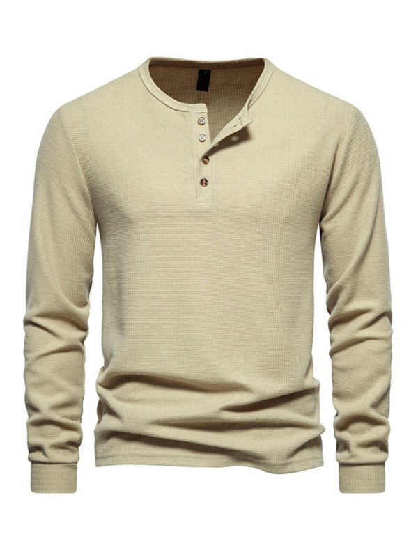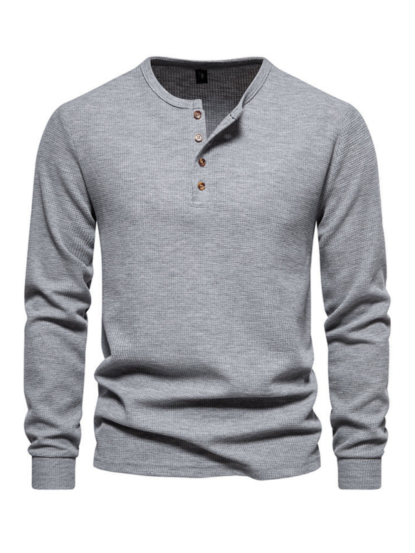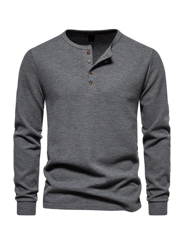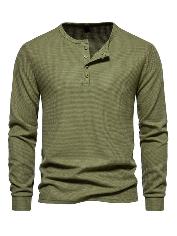 Men’s Four Button Waffle Henley Neck Long Sleeve T-Shirt
