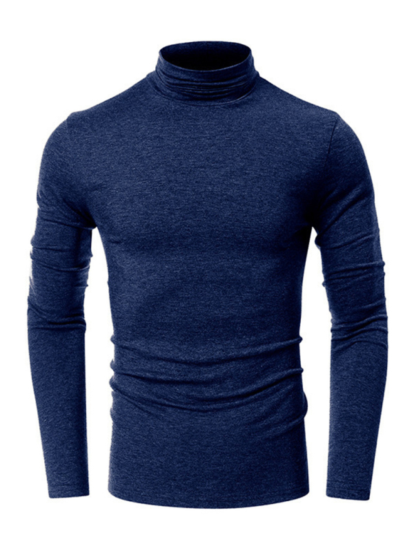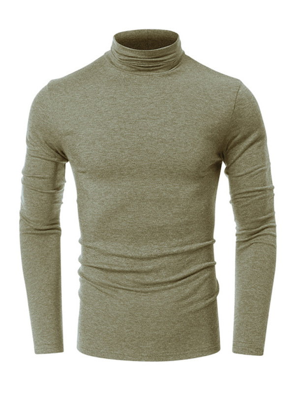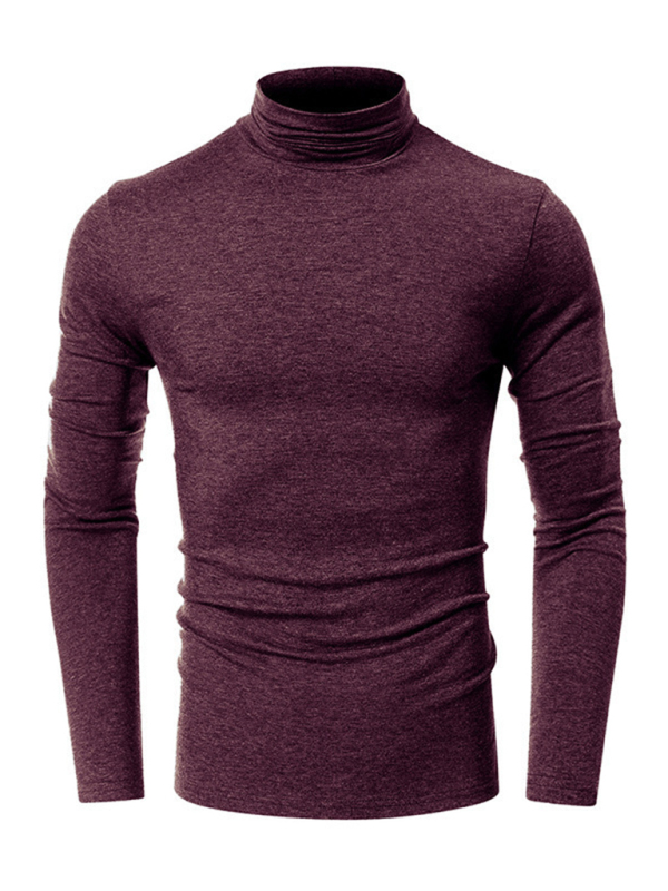 Men’s long-sleeved solid color turtleneck bottoming T-shirt top
