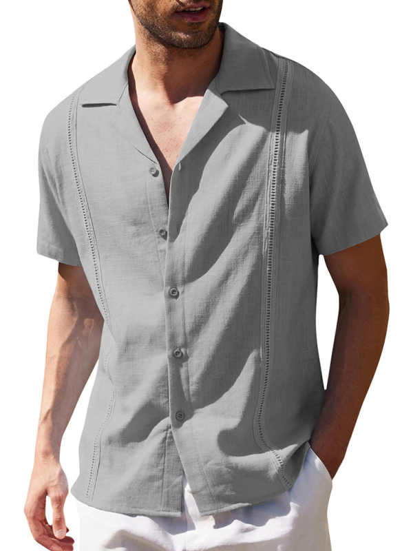Men’s Loose Casual Linen Shirt Cuban Guayabera Short Sleeve Beach Shirt