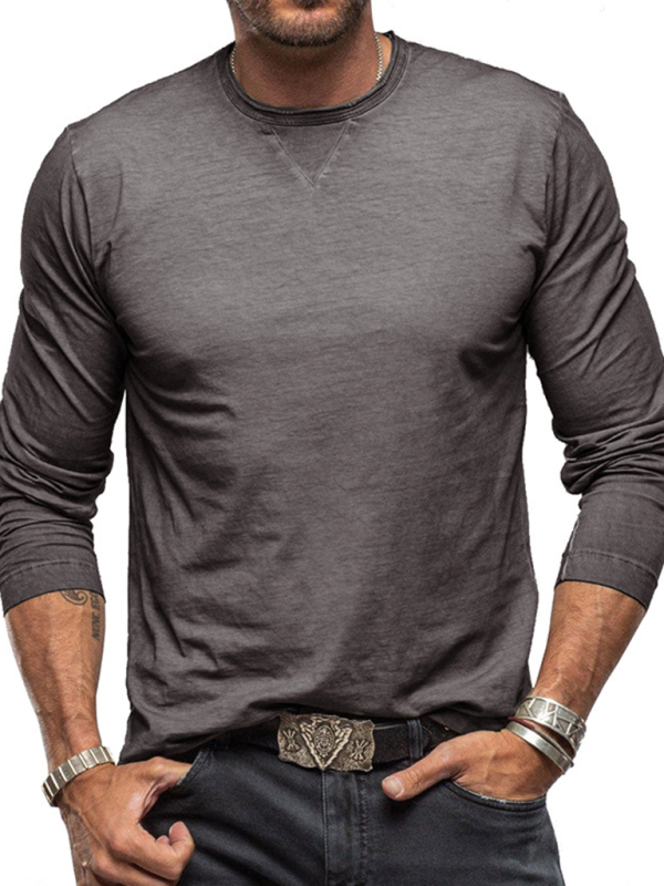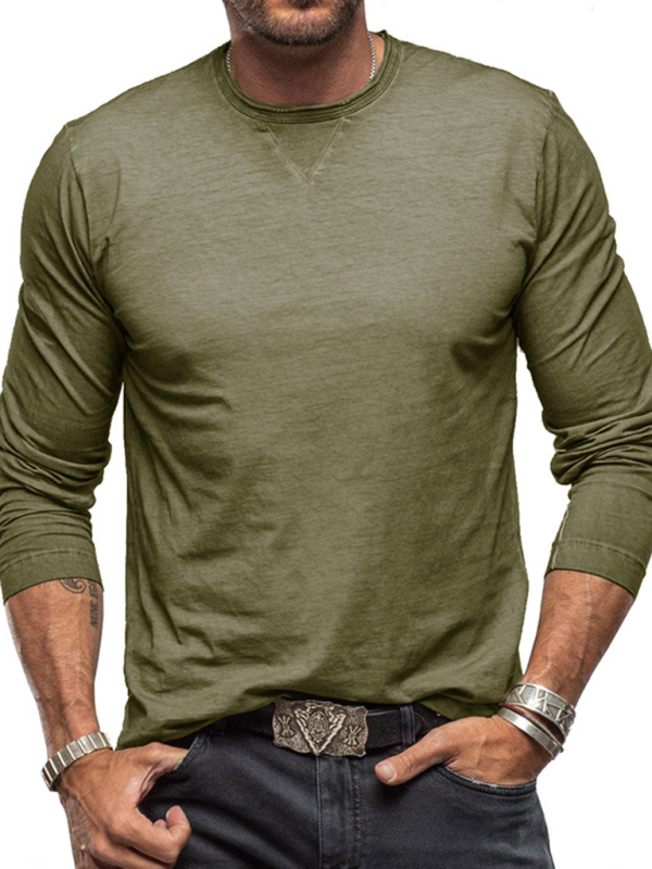 Men’s new solid color round neck long sleeve cotton t-shirt