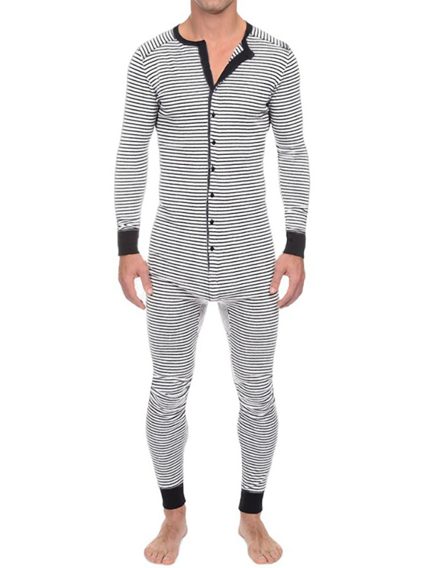 Our union suit features button down closure, stripe fashion style, one piece loungewear jumpsuit, sturdy rib cuffs that provide stretch, crewneck, Stretchable Elastic at Bottom.