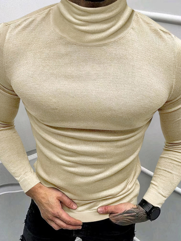 Men’s Solid Color Turtleneck Long Sleeve T-Shirt