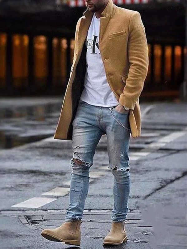 The mid-length woolen coat for young men is suitable for a variety of scenes. The simple design makes the boring season colorful and interesting. A variety of matching options make you confident and handsome. Please use the sizing guide shown in our images when purchasing. Please read each element in the size guide carefully before choosing a size. Sizes are measured manually, and an error of 1-3cm is normal.