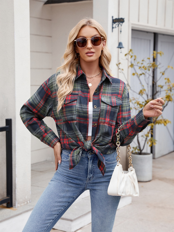 New Casual Fashion Loose Plaid Pocket Shirt