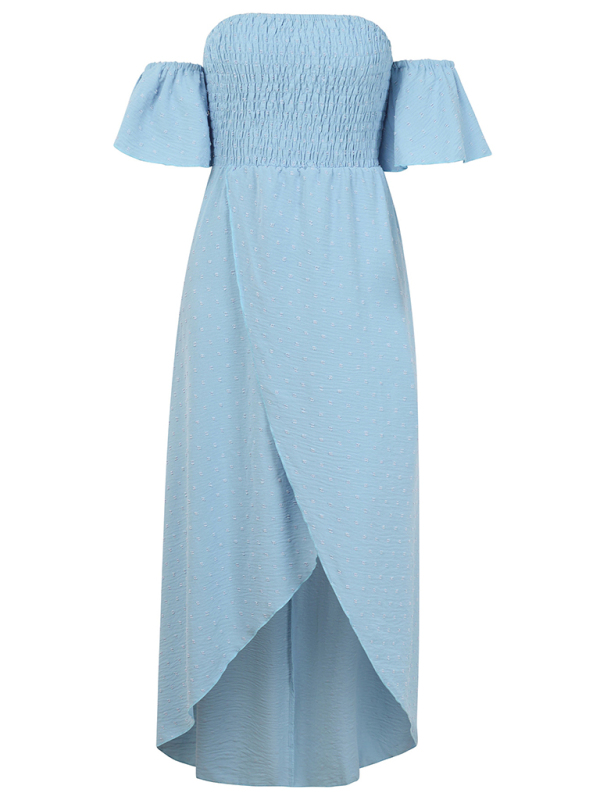 This long dress adopts an irregular hem design, which gives the skirt an asymmetric or curved shape, adding to the dynamics and uniqueness of the skirt. The solid color design is simple and classic. The choice of solid colors makes the long skirt more versatile and easy to match with other clothing and accessories, showing a simple and fashionable style.