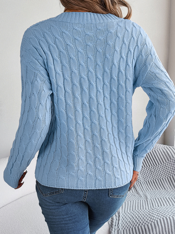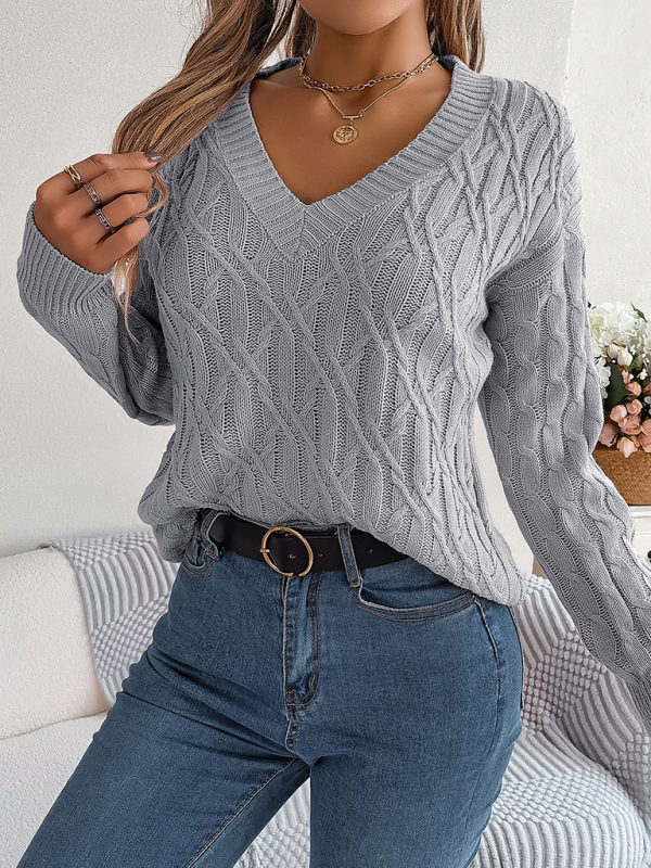 New casual solid color twist long-sleeved V-neck sweater