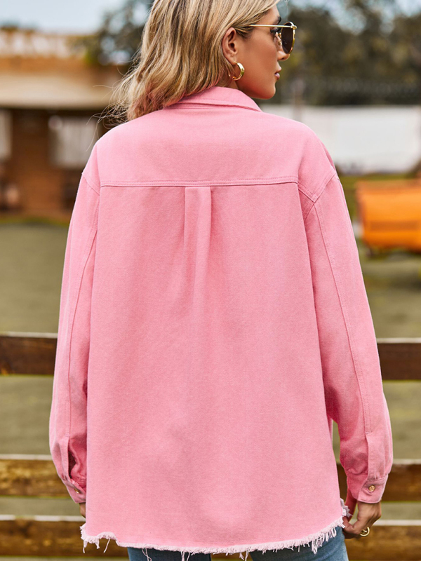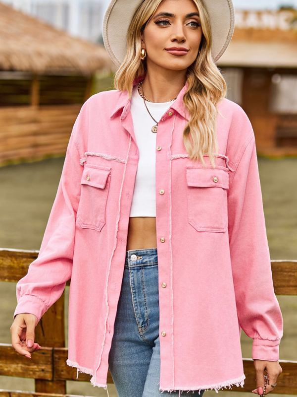 The new denim raw edge washed fringe top casual shirt is suitable for many occasions, and the simple design makes the boring season colorful and interesting. A variety of collocation options make you confident and beautiful. Please use the size guide shown in our images. Please read each element in the size guide carefully before choosing a size. The size is measured manually, and it is normal for there to be an error of 1-3cm.