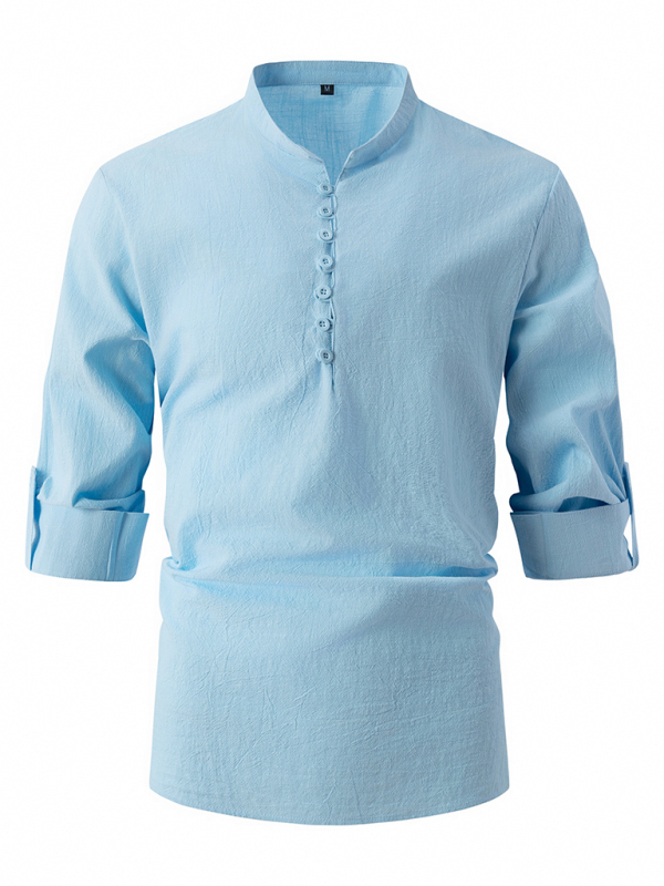 New Fashion Retro Stand Collar Slim Fit Casual Long Sleeve Shirt