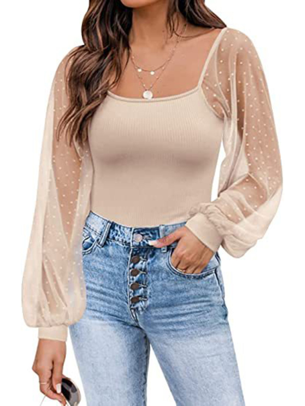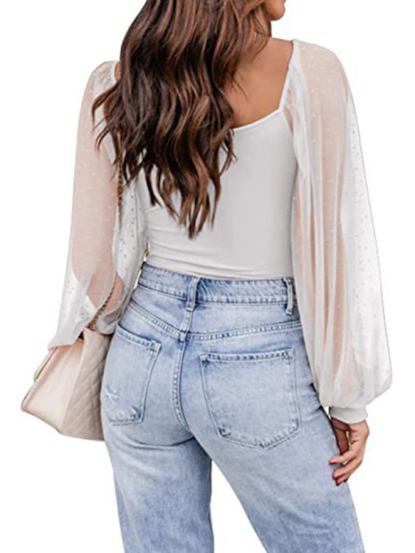 This new women’s fashion see-through balloon sleeve paneled slim top is suitable for everyday casual occasions! Simple design, making boring seasons interesting. A variety of matching options, it will make you feel confident and beautiful. It has a snug fit that won’t restrict your movement.