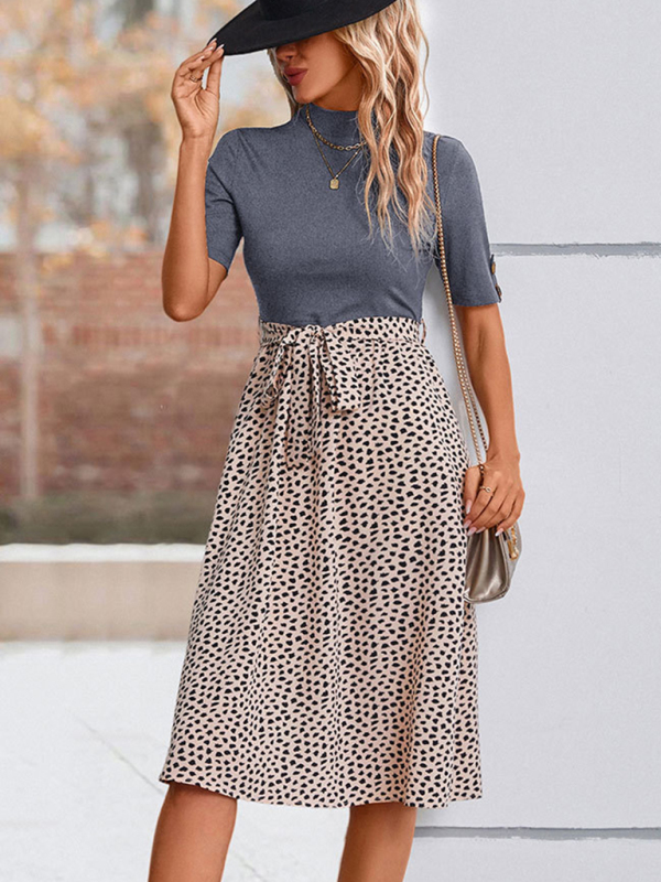 The new women’s semi-high collar leopard print mosaic dress is suitable for many occasions, and the simple design makes the boring season colorful and interesting. A variety of collocation options make you confident and beautiful. It fits snugly without restricting your movement.