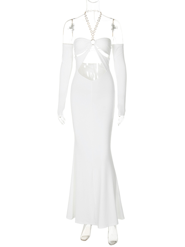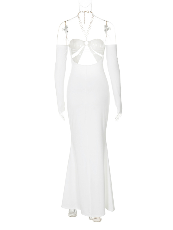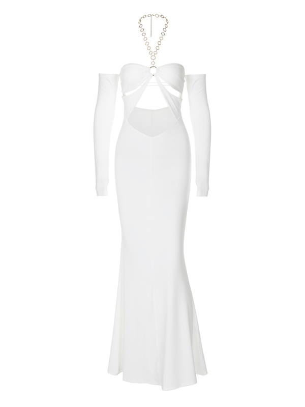 New one-shoulder hollow design sexy hot girl halter neck dress