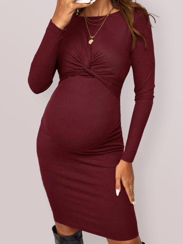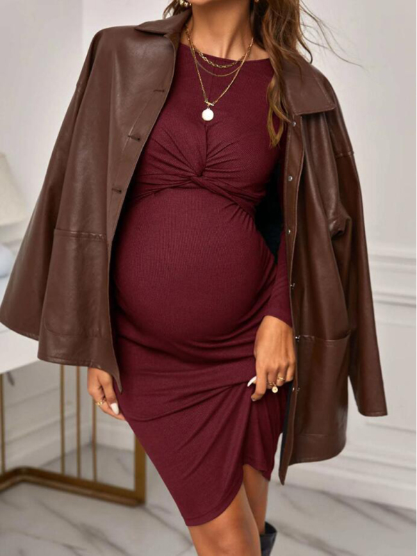 New Round Neck Long Sleeve Knitted Maternity Dress Tight Solid Color Short Maternity Dress you can wear to work, out with your girl, or even a date? This new solid color long sleeve lace up maternity dress is perfect for all occasions! Available in a variety of colors, it will make you feel confident and beautiful. It has a comfortable fit that won’t restrict your movement.