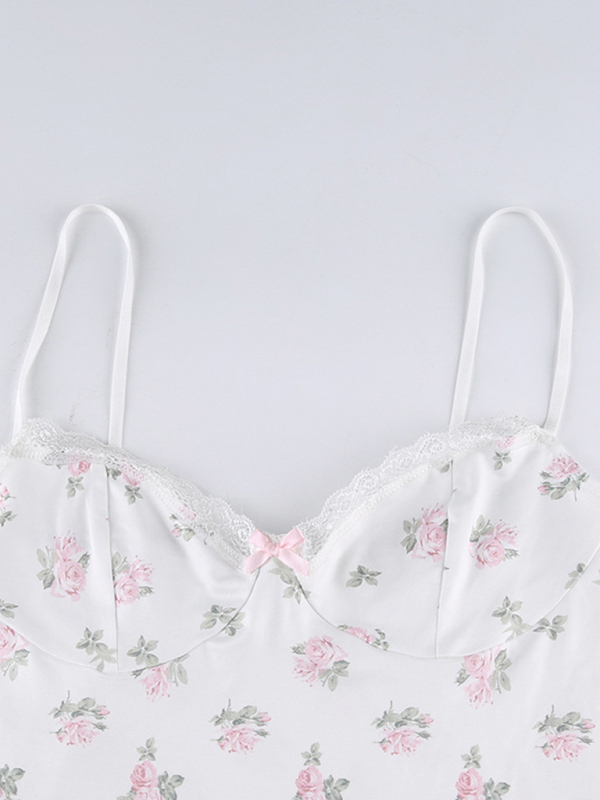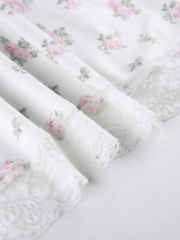 New sexy floral contrasting lace stitching sexy low-cut suspender-covering skirt
