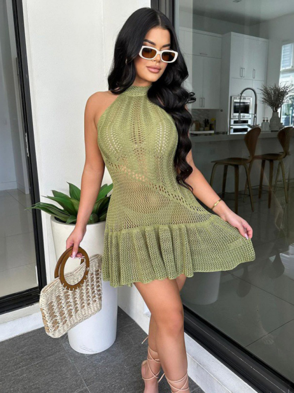 This solid color sleeveless halterneck backless knitted dress is suitable for parties, nightclubs, dances, etc. Pair it with the right shoes and accessories to create a sexy look.
