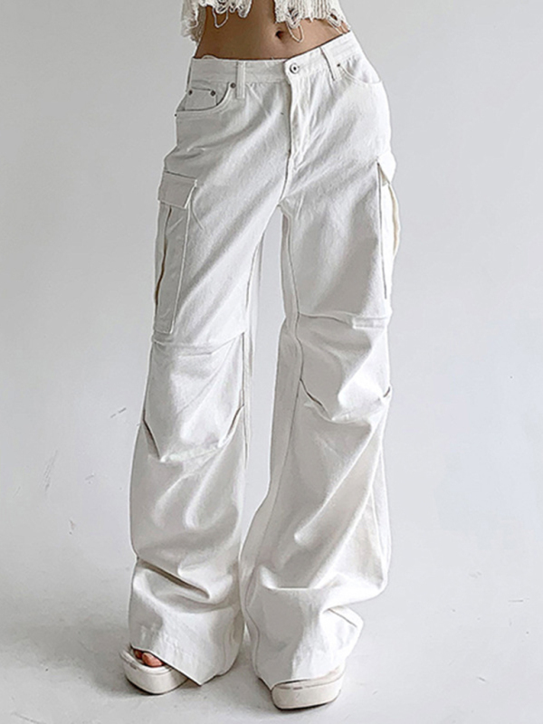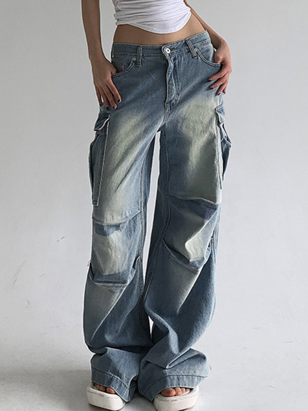 New street style distressed washed pocket spliced jeans and loose straight trousers. The simple design makes the boring season colorful and interesting. A variety of matching options make you confident and beautiful. Please use the sizing guide shown in our images when purchasing. Please read each element in the size guide carefully before choosing a size. Sizes are measured manually, and an error of 1-3cm is normal.